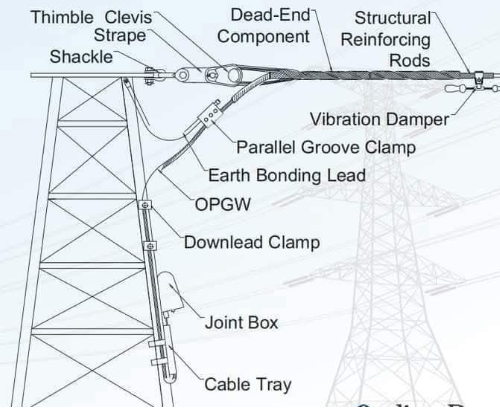 - Grounding/Shielding: It protects the underlying phase conductors from lightning strikes and provides a path for fault currents.